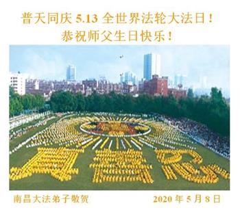 【明慧网二零二零年五月十三日】 江西省南昌市大法弟子恭祝师父生日快乐!普天同庆5.13世界法轮大法日!