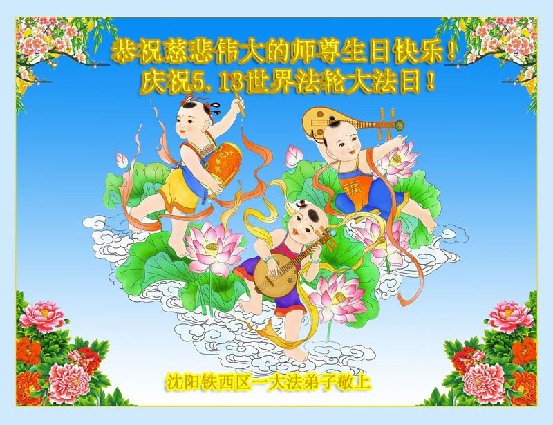 辽宁省沈阳市一大法弟子携家人恭贺世界法轮大法日!恭祝师父生日快乐!