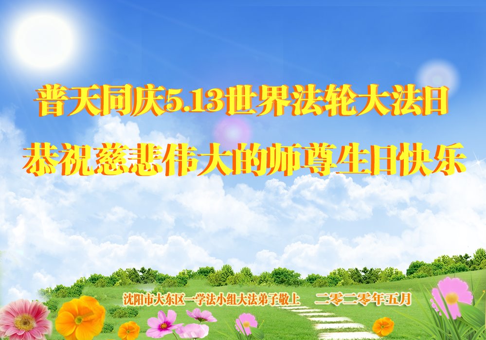 同贺世界法轮大法日! 辽宁省沈阳市大东区一学法小组大法弟子恭祝慈悲伟大的师尊生日快乐!