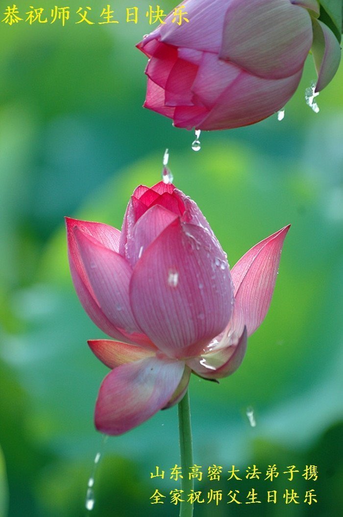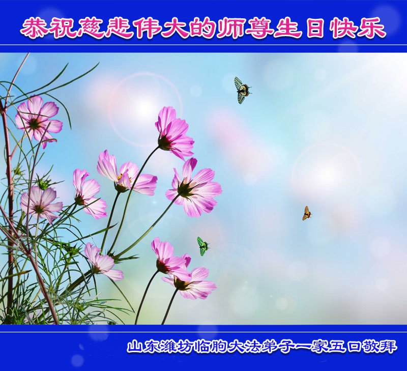 山东高密大法弟子携全家恭祝师父生日快乐! 我们全家谢谢师父的慈悲救度!跪拜师父。 山东省潍坊市寿光市大法弟子恭祝师父生日快乐!