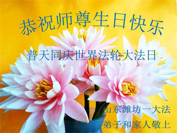 山东省潍坊市大法弟子一家人恭贺法轮大法日!