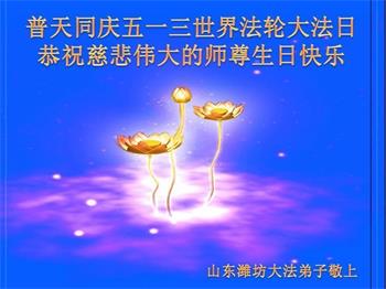 【明慧网二零二零年五月十三日】 山东潍坊市大法弟子恭贺世界法轮大法日!