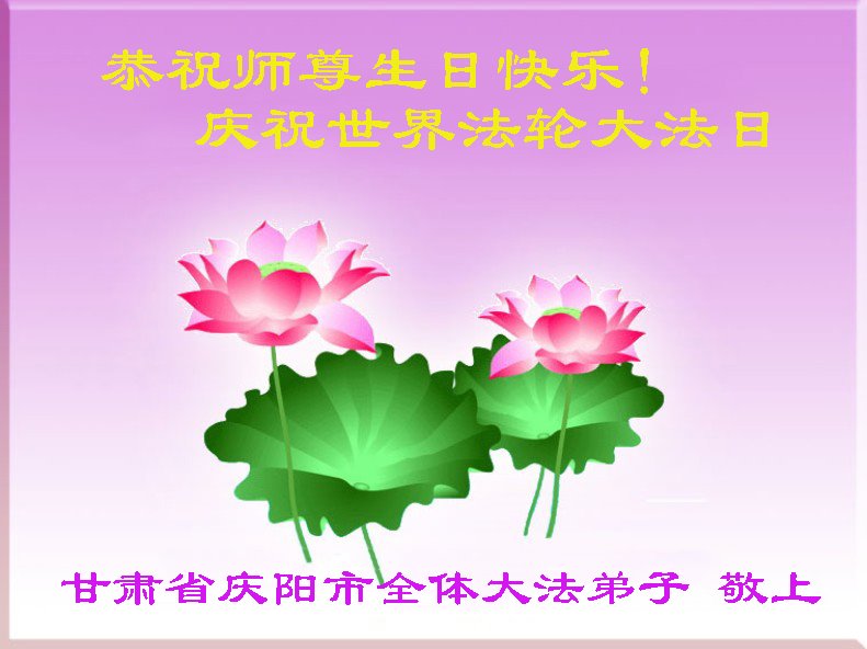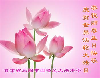 甘肃省庆阳市西峰区全体大法弟子恭祝师尊生日快乐!庆贺世界法轮在法日!