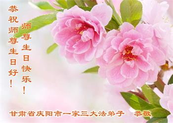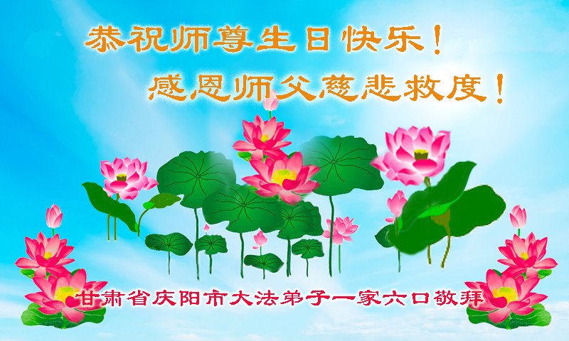 甘肃省庆阳市一家三大法弟子恭祝师尊生日好!师父生日快乐!