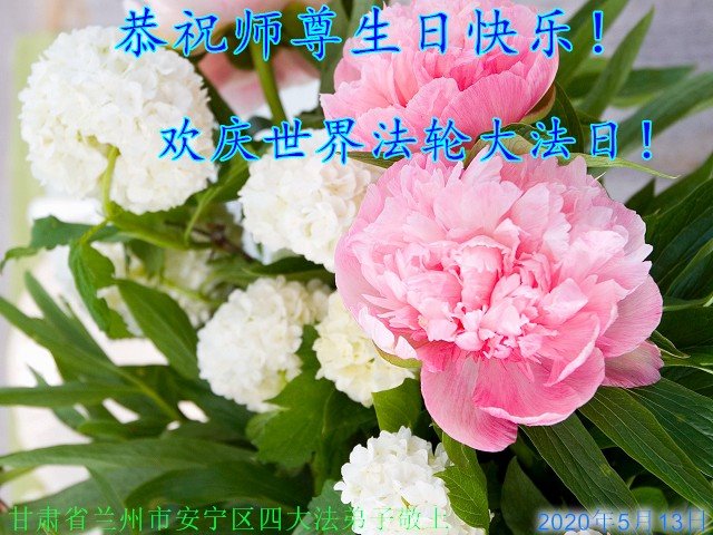 【明慧网二零二零年五月十三日】 甘肃兰州市安宁区四大法弟子恭贺法轮大法日!