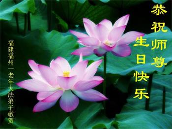 福建福州一老年大法弟子恭祝师父生日快乐暨世界法轮大法日!
