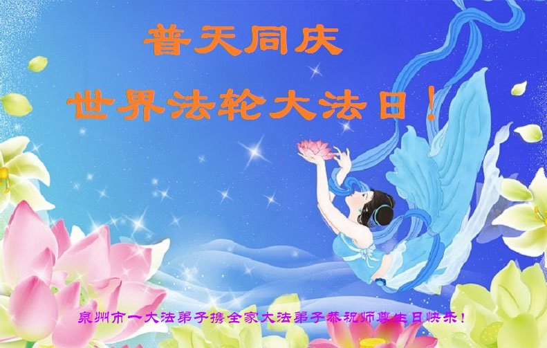 福建省泉州市全家大法弟子恭祝师尊生日快乐!恭贺法轮大法日!感谢师尊的慈悲苦度!