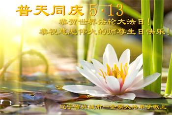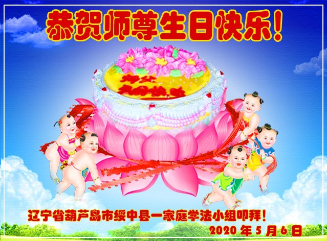 【明慧网二零二零年五月十三日】 辽宁省葫芦岛市兴城市一全家大法弟子恭祝慈悲伟大的师尊生日快乐!