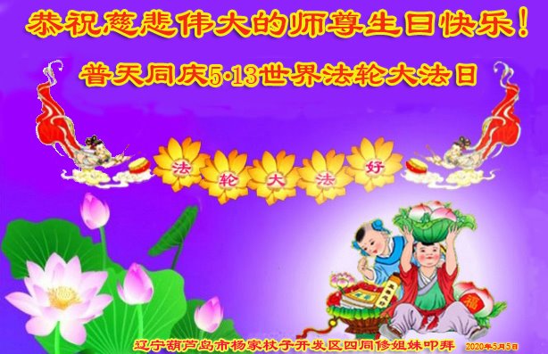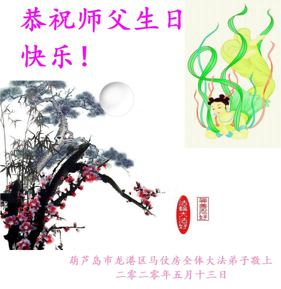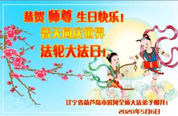 恭祝师尊生日快乐! 普天同庆世界法轮大法日! 辽宁省葫芦岛市滨河全体大法弟子叩拜! 2020年5月6日 辽宁省葫芦岛市大法弟子恭祝师父生日快乐!感恩师尊救度!