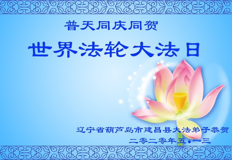 恭祝师父生日快乐! 感恩师父慈悲苦度!弟子一定听师父话,做好三件事,修好自己,多救人。 葫芦岛市龙港区马仗房全体大法弟子敬上 二零二零年五月五日 辽宁省葫芦岛市建昌县大法弟子恭贺世界法轮大法日!