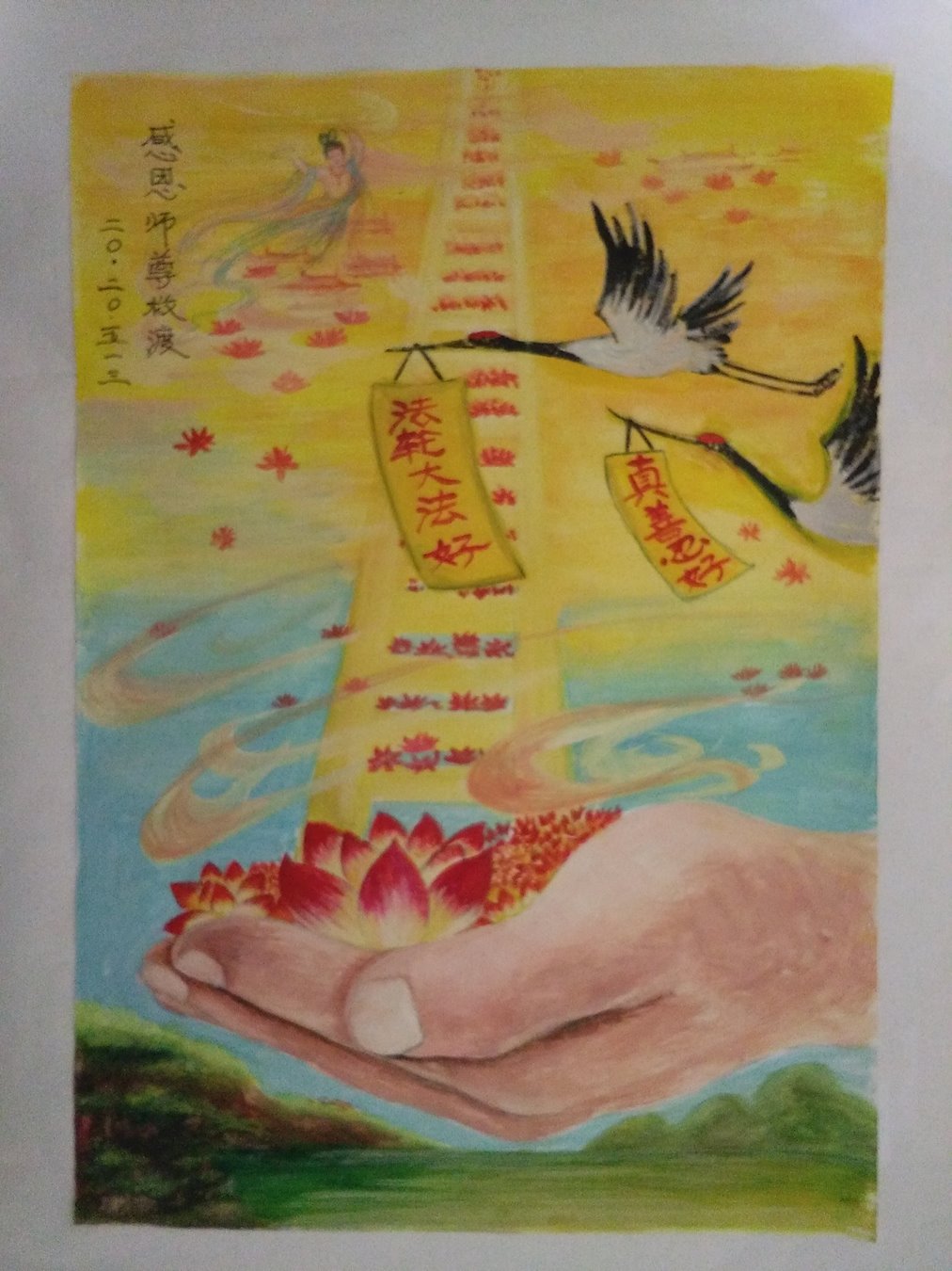 感恩的心 又是一年五·一三 感恩的话语说不完 遥祝师尊身体好 隔海相祝泪涟涟 师尊为我操尽心 正法途中显神威 千古巨难一人担 佛恩浩荡天宇间 洒遍人间真善忍 救度众生苦海中 得救生命齐欢颂 恭祝之声四海平 普天同庆五·一三 唯愿师尊笑开颜 弟子跪拜师恩 祝师父生日快乐! 辽宁葫芦岛市钢屯大法弟子敬上 辽宁省葫芦岛、高桥全体大法弟子恭祝慈悲伟大的师尊生日快乐!普天同庆5·13世界法轮大法日!