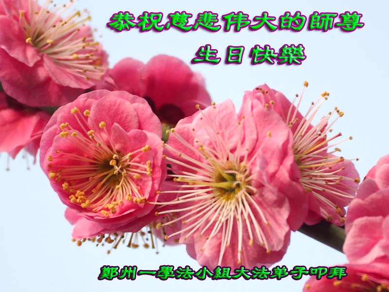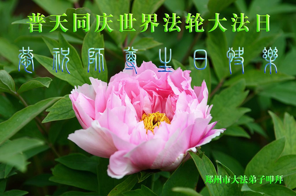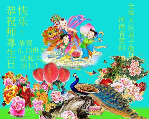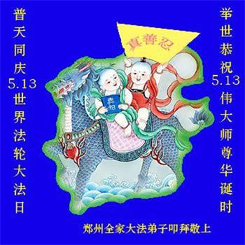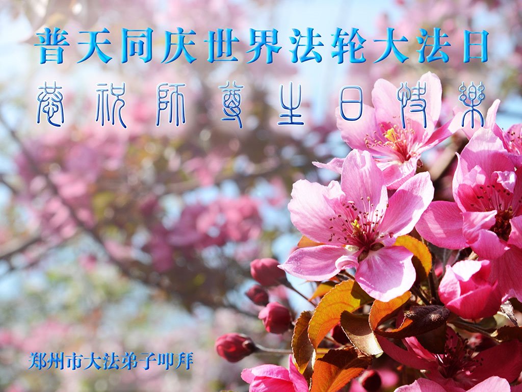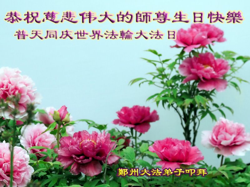 郑州大法弟子恭祝师父生日快乐!普天同庆世界法轮大法日!感谢师父慈悲救度! 河南省郑州全家大法弟子恭贺世界法轮大法日!