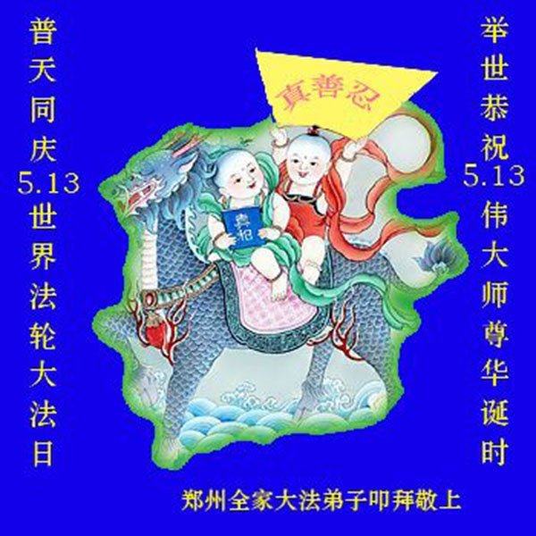 恭贺世界法轮大法日! 恭贺5.13世界法轮大法日暨慈悲伟大的师父生日快乐! 感恩师尊! 河南省郑州市大法弟子恭祝慈悲伟大的师尊生日快乐!