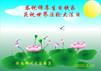 河南省郑州一大法弟子恭祝师尊生日快乐!恭贺世界法轮大法日!