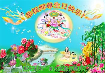河南省郑州全家大法弟子恭祝慈悲伟大的师尊生日快乐! 河南省郑州市大法弟子恭祝师父生日快乐!