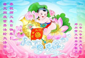 河南省郑州大法弟子恭贺法轮大法日!恭祝师尊生日快乐!