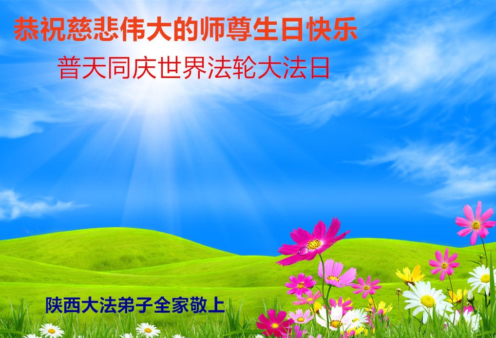 陕西渭南市全体大法弟子向伟大的师尊问好!恭祝师尊生日快乐!普天同庆世界法轮大法日! 陕西省大法弟子全家恭祝慈悲伟大的师尊生日快乐!
