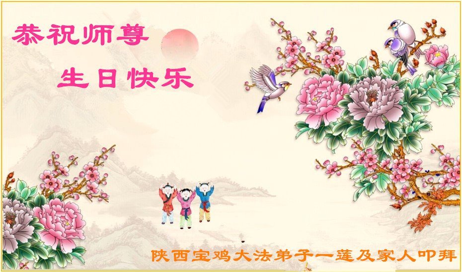 陕西省宝鸡市一大法弟子及家人恭祝师尊生日快乐!