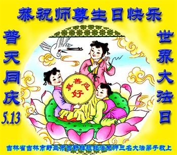 谢谢师尊在艰苦的环境下保护着弟子、看护着我们,师尊辛苦了!谢谢师尊!法轮大法好!真善忍好! 黑龙江省佳木斯地区大法弟子一家三口恭贺法轮大法日!