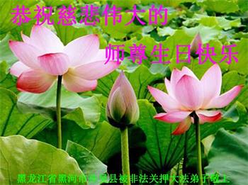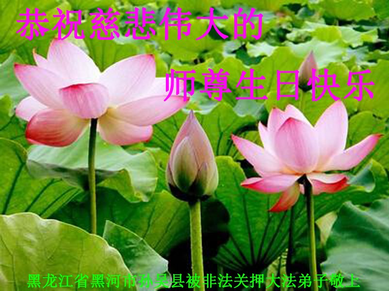 【明慧网二零二零年五月十三日】 黑龙江省黑河市孙吴县被非法关押的大法弟子恭祝师父生日快乐!