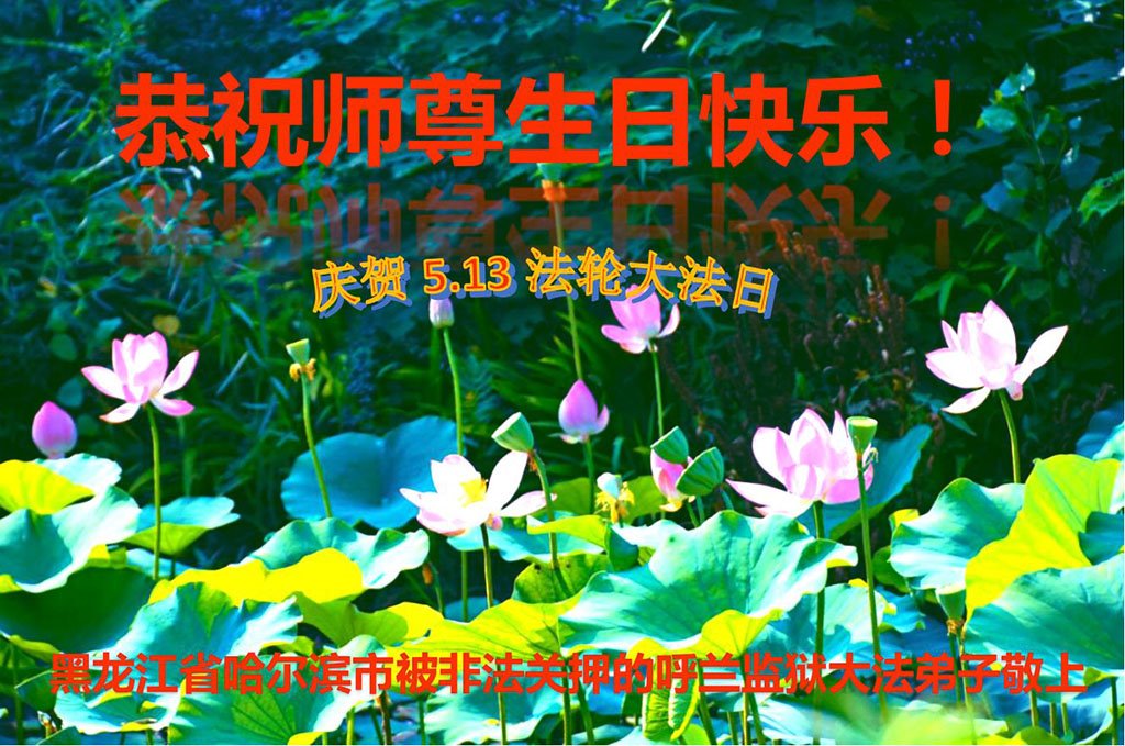 黑龙江省哈尔滨市双城区被非法关押在呼兰监狱的大法弟子恭祝师尊生日快乐!恭贺世界法轮大法日!