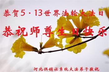 中国大陆税务系统大法弟子恭贺2020世界法轮大法日暨师尊华诞!恭祝师尊生日快乐!请师尊放心,弟子对大法的正信坚如磐石,多年的修炼中弟子深深感受到伟大师尊的洪大慈悲!万分感恩师尊的慈悲救度,弟子叩谢师恩!法轮大法好!真善忍好!法轮大法是正法! 河北供销社系统大法弟子恭祝师尊生日快乐!
