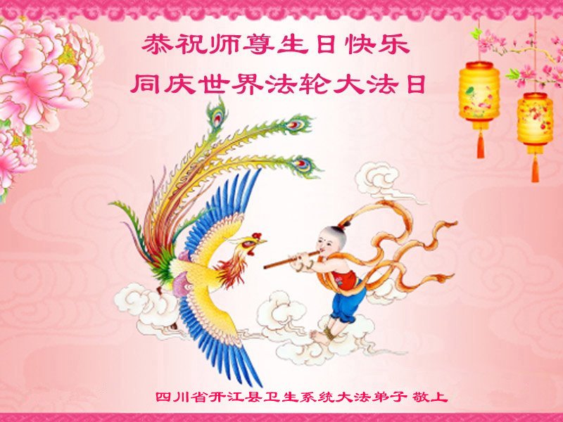 四川省达州市开江县卫生系统全体大法弟子恭祝慈悲伟大的师尊生日快乐!