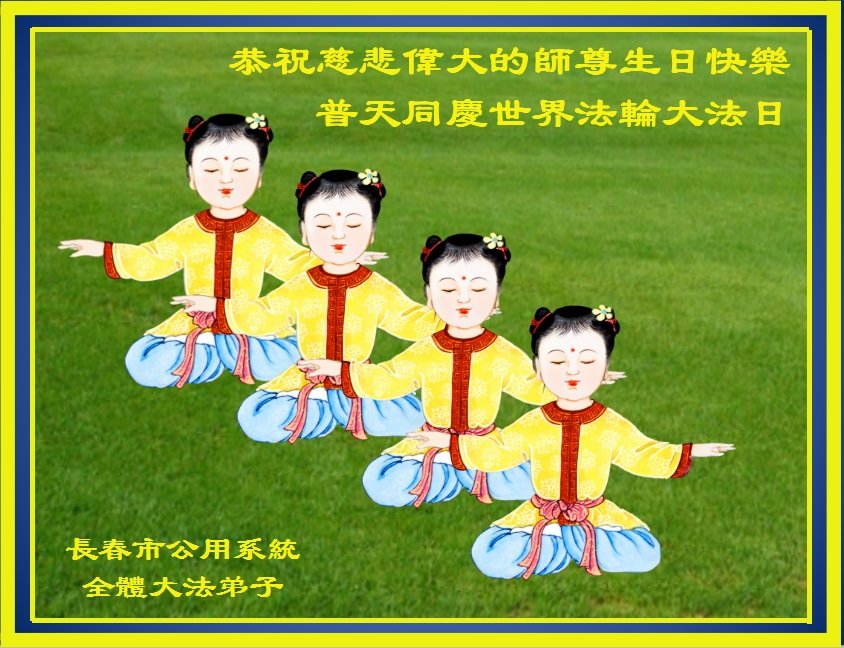 长春市公用系统大法弟子恭祝伟大的师尊生日快乐!并恭贺法轮大法日! 中国大陆税务系统大法弟子恭贺法轮大法日!