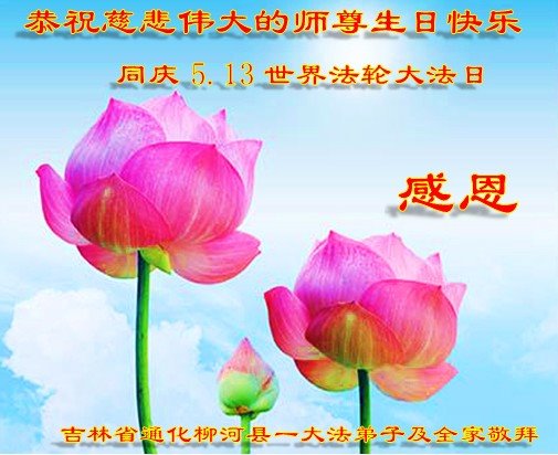 恭祝慈悲伟大的师尊生日快乐!感谢师尊慈悲救度!庆祝世界法轮大法日! 吉林省白山市泉阳镇大法弟子敬上 吉林省通化市大法弟子恭祝慈悲伟大的师尊生日快乐!