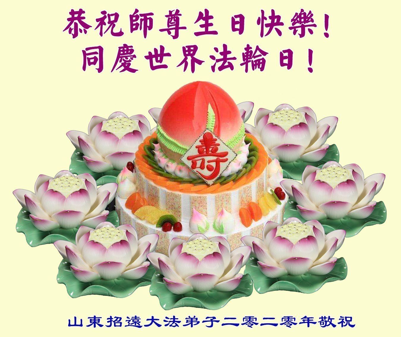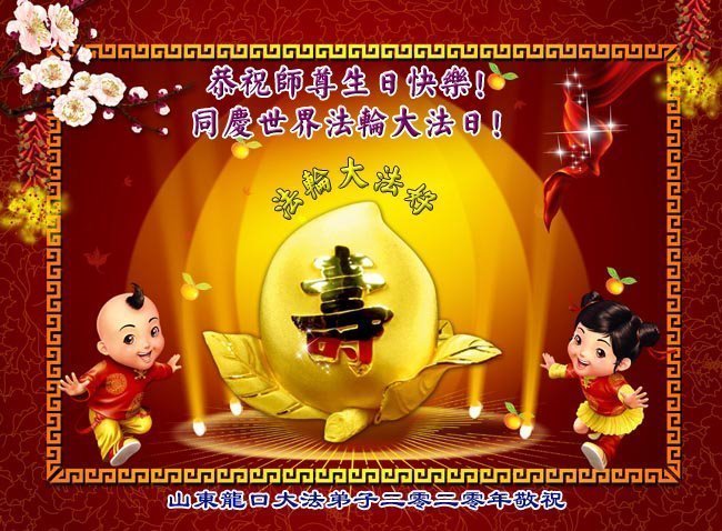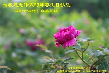 恭祝师父生日快乐!恭贺世界法轮大法日!弟子定继续加紧做好三件事,精進实修,跟师父回家,不辜负师父的慈悲救度!感恩师父! 合十 山东省烟台市蓬莱市大法弟子 2020年5月8日 山东大法弟子恭贺世界法轮大法日!