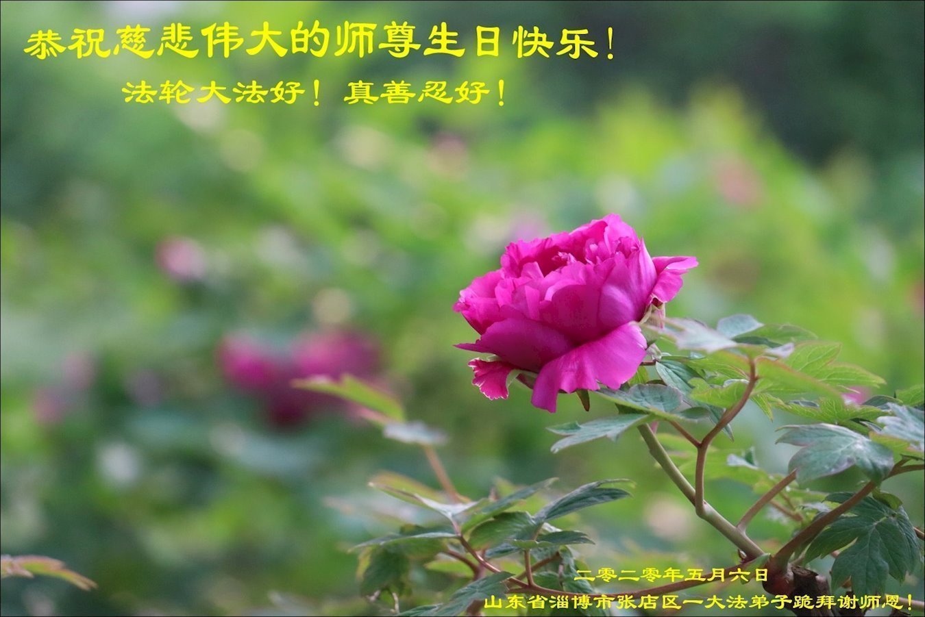 【明慧网二零二零年五月十三日】 山东省淄博市大法弟子恭贺世界法轮大法日暨师尊华诞!恭祝师尊生日快乐!