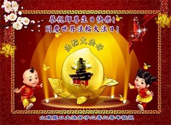 恭祝师尊生日快乐! 同庆世界法轮大法日! 山东省烟台市龙口市大法弟子恭祝师尊生日!同庆世界法轮大法日!