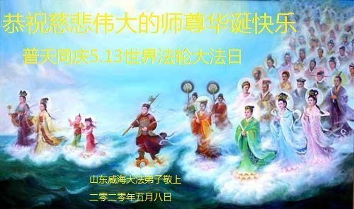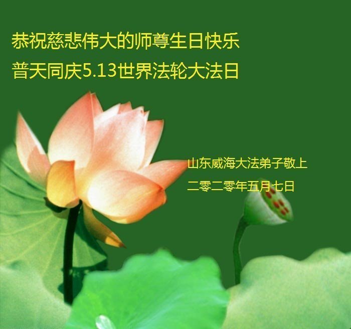 恭祝师尊生日快乐! 同庆世界法轮大法日! 山东威海大法弟子恭祝慈悲伟大的师父生日快乐!