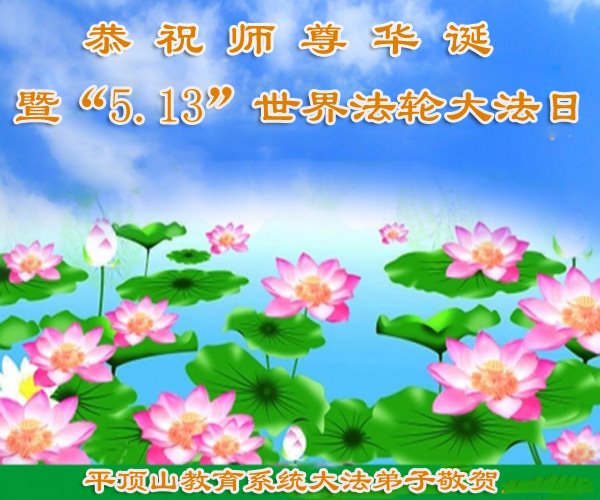 广东省教育系统全体法轮大法弟子恭祝慈悲伟大的师尊华诞!普天同庆同祝5.13世界法轮大法日! 黑龙江省教育系统大法弟子恭贺世界法轮大法日!