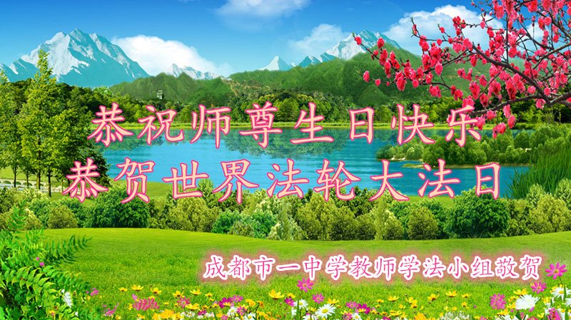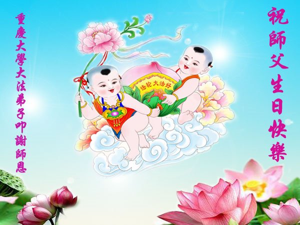 重庆大学大法弟子恭祝慈悲伟大的师父生日快乐!与全世界大法弟子共庆世界法轮大法日!在这伟大的日子里,我们感恩师尊的慈悲救度!我们深知师父苦度众弟子,救度众生的艰辛!师父辛苦您了!弟子们唯有珍惜今天来之不易的修炼机缘,好好学法,坚定修炼,在法中不断的归正自己,不被世间的乱象干扰,多救众生,来回报师父的慈悲救度! 四川省成都一中学教师学法小组大法弟子恭祝慈悲伟大的师父生日快乐!恭贺5.13世界法轮大法日!