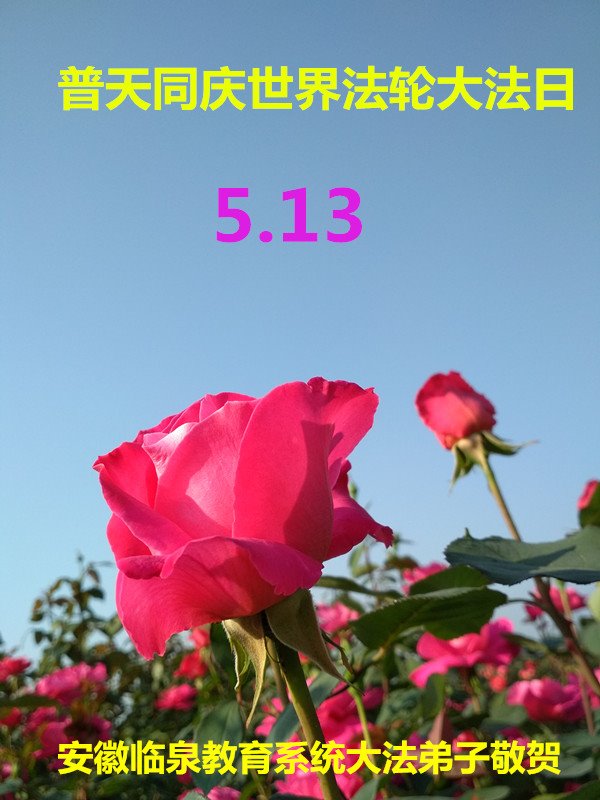 师父您好!弟子想念远隔重洋的师尊!弟子知道与师父团聚的日子不远了!今年的中共病毒,令世人看透了邪*党-的邪恶,邪*党-根本不拿老百姓的生命当回事,用谎言掩盖着事实真相,有好多世人因此明白了真相,退出了邪*党-的邪恶组织,为自己选择了光明的未来!他们从心里感恩师尊,弟子借此机会替这些生命谢谢师尊!师尊您辛苦了! 安徽临泉教育系统大法弟子恭贺世界法轮大法日!恭祝师尊生日快乐!