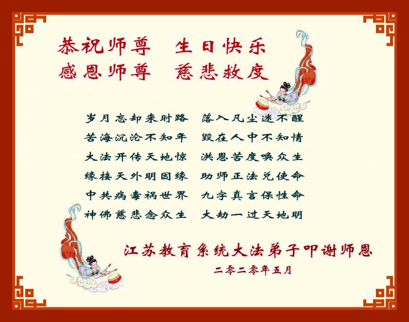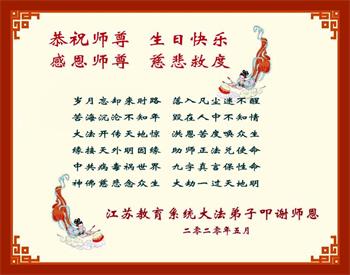 江苏教育系统大法弟子恭祝师尊生日快乐!