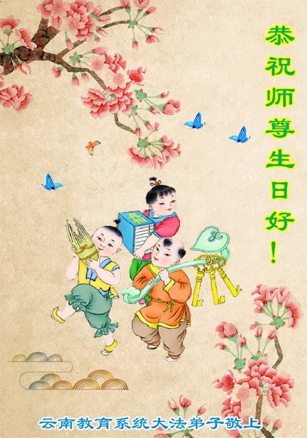 河南平顶山教育系统全体弟子恭祝慈悲伟大的师尊生日快乐!庆祝世界法轮大法日!师尊是您把我们从地狱中捞起,又把这部高德宇宙大法传授给我们,救度我们、洗净我们,我们是多么的幸运,多么幸福!在此我们跪拜师尊对我们的慈悲救度,感恩师尊!我们唯有做好三件事,救度更多的众生,来回报师恩!圆满随师还。 合十 云南教育系统大法弟子恭祝慈悲伟大的师尊生日好!