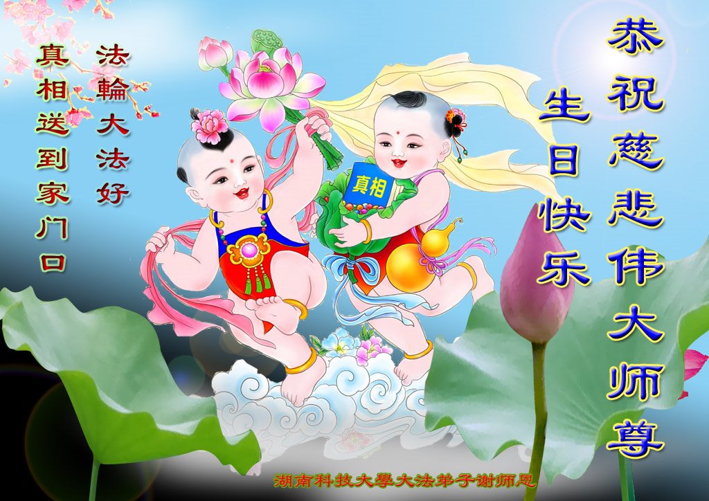湖南省教育系统大法弟子恭贺世界法轮大法日!恭祝师尊生日快乐!