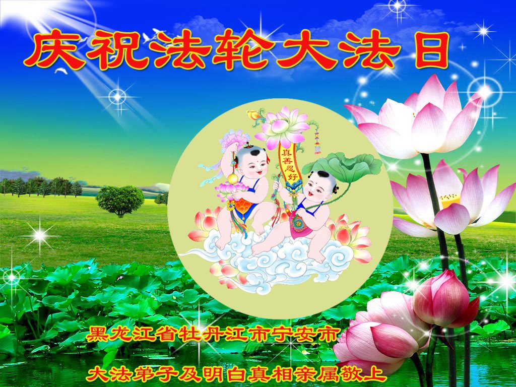 黑龙江省牡丹江市宁安市大法弟子恭祝师尊生日快乐!庆祝世界法轮大法日!