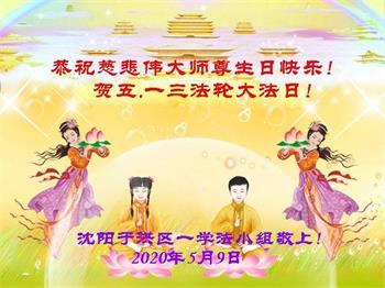 辽宁省沈阳市于洪区一学法小组大法弟子敬上 2020年5月9日 辽宁省沈阳市大法弟子恭贺师尊华诞!