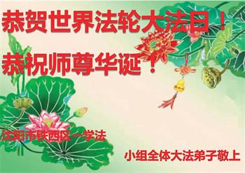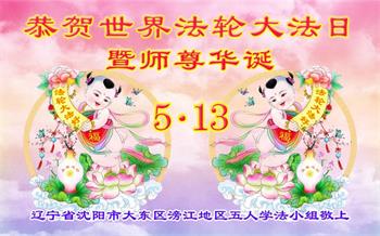 辽宁省沈阳市大东区五人学法小组大法弟子恭祝师尊华诞暨世界法轮大法日!