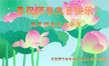 辽宁省沈阳市两个老年学法小组大法弟子恭祝师尊生日快乐!