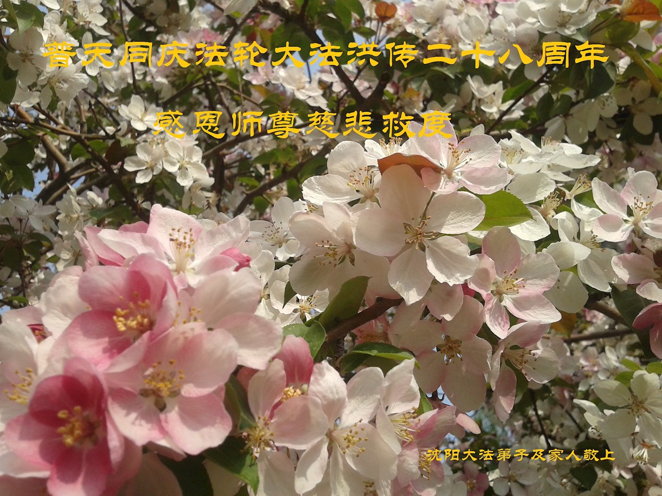 普天同庆法轮大法洪传二十八周年!感恩师尊慈悲救度! 辽宁省沈阳市大法弟子恭祝师尊生日快乐!