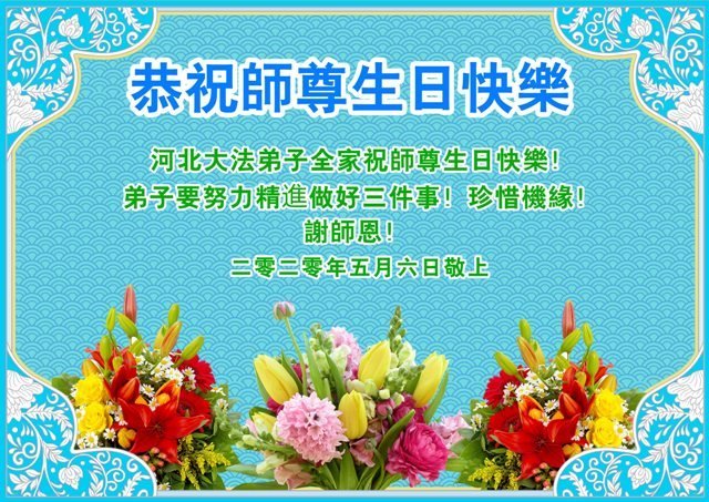 河北大法弟子全家恭祝师尊生日快乐!