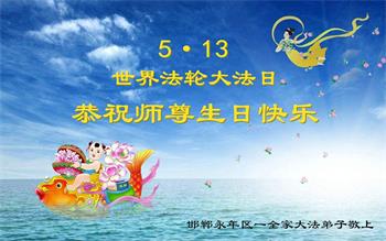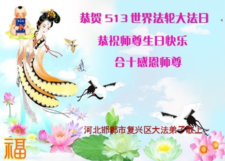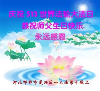 河北邯郸市复兴区一大法弟子庆祝世界法轮大法日!恭祝师父生日快乐!