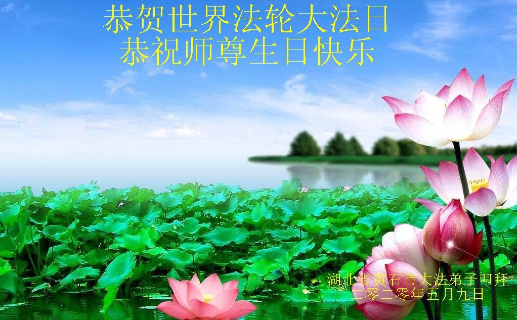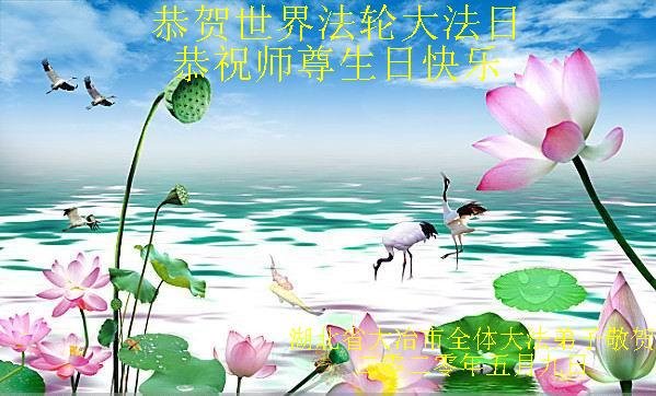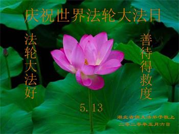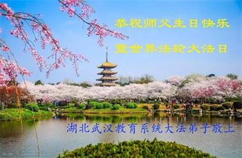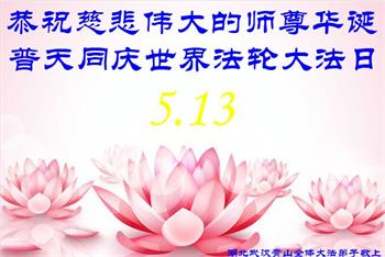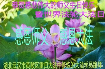 湖北大法弟子恭祝师父生日愉快!庆祝法轮大法弘传二十八周年暨世界法轮大法日!