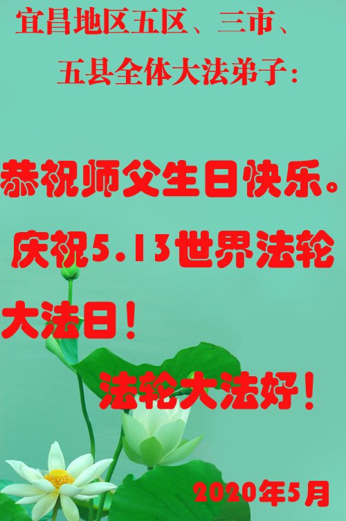 【明慧网二零二零年五月十三日】 湖北省宜昌市全体大法弟子恭祝师父生日快乐!