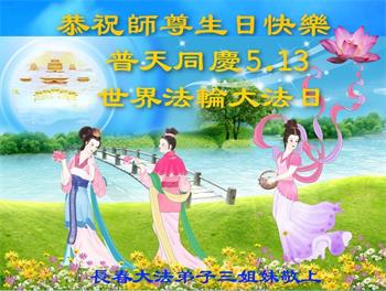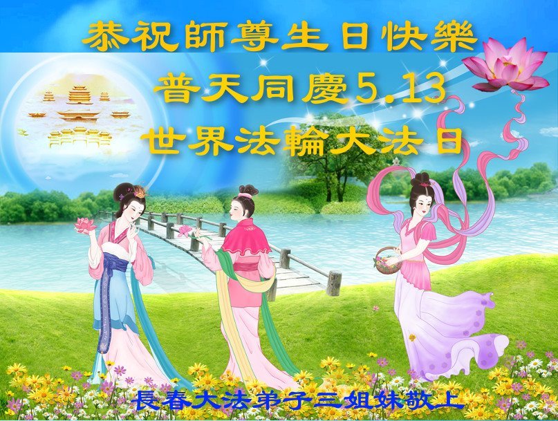 吉林省长春市大法弟子三姐妹恭祝师尊生日快乐!