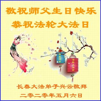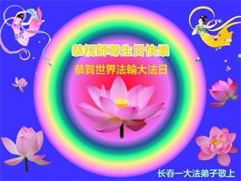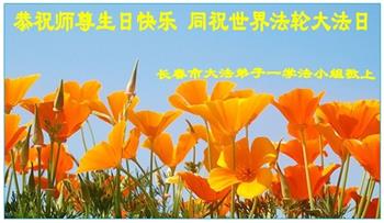 吉林省长春市大法弟子恭祝师尊生日快乐!庆祝法轮大法洪传世界28周年!